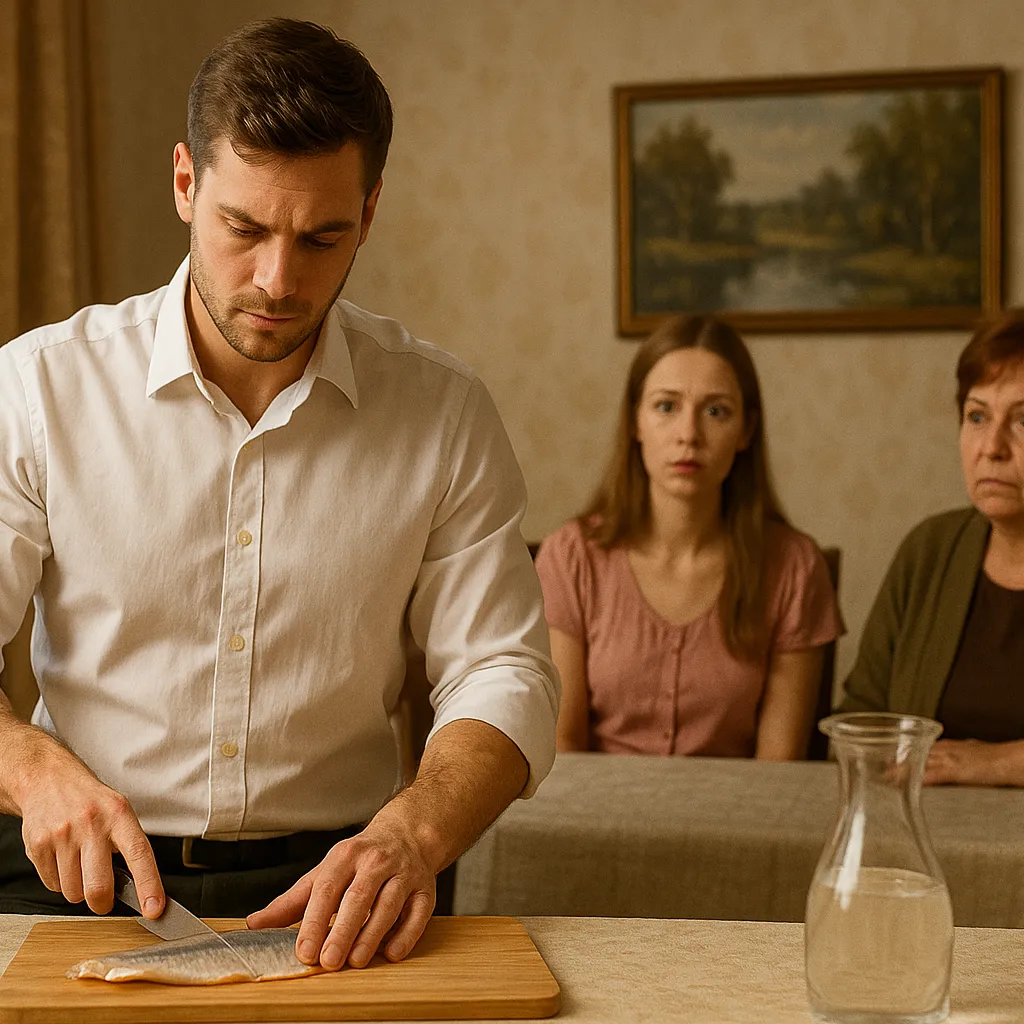 Иван посмотрел на невесту, на потенциальную тещу и, закатав рукава белоснежной рубашки, решительно пошел к разделочной доске. Он не мог отказаться. И дело не в вежливости, а в том, что он не любил, когда его берут «на слабо».
