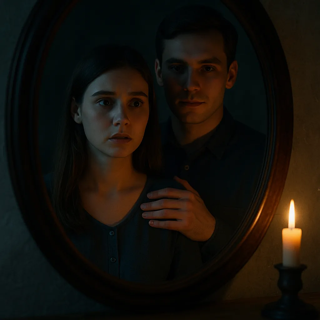 — Боюсь, девочки, — сказала Ирина, но гадать всё-таки пошла. Она пристально всматривалась в зеркало, но видела в нём только своё отражение. Вдруг неизвестно откуда появился Сергей. Он стоял сзади Иры, положив свою руку ей на плечо, и она чётко видела его отражение.