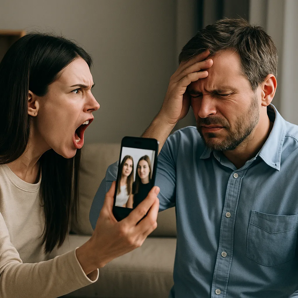 — Ты просто сводишь меня с ума своей ревностью! — кричал Андрей в попытках угомонить супругу, которая уже несколько часов допрашивала мужа о новых сотрудницах.