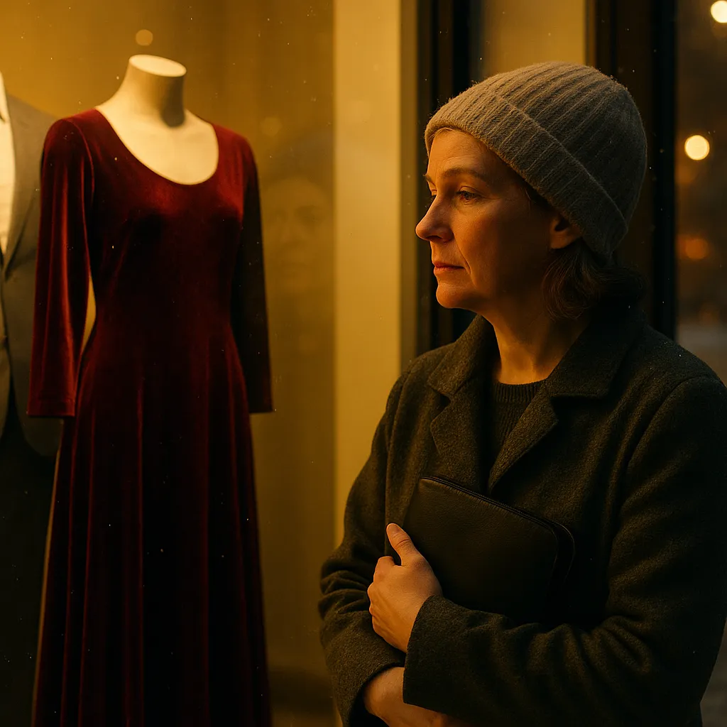 Галина Сергеевна возвращалась с работы тем же маршрутом, что и всегда — по улице с вечными пробками и бестолковыми витринами. Магазины одежды она обычно обходила стороной: не про ее честь. Но в тот вечер, когда снег падал редкими хлопьями и улица светилась желтым, чуть усталым, светом, она остановилась.