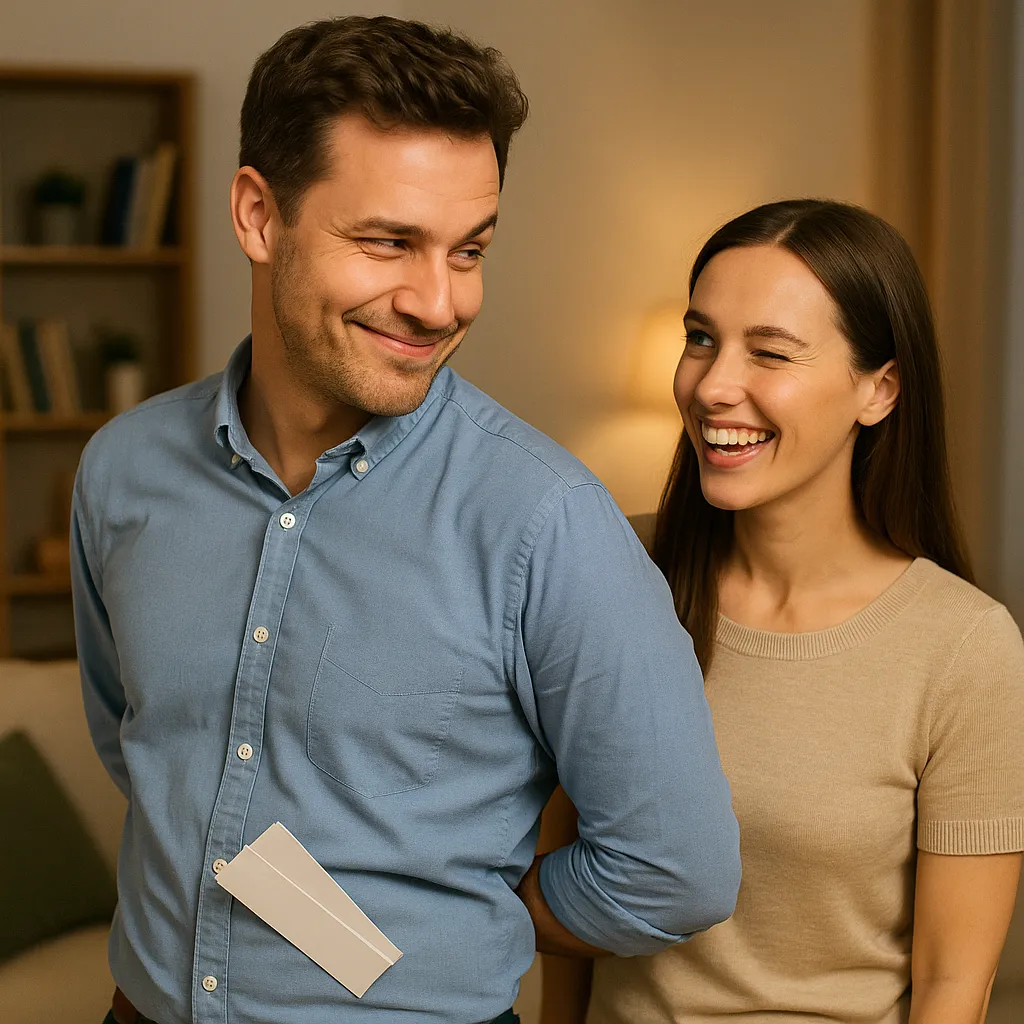 Войдя в комнату, Антон так хитро взглянул на жену, что та сразу догадалась: будет сюрприз.