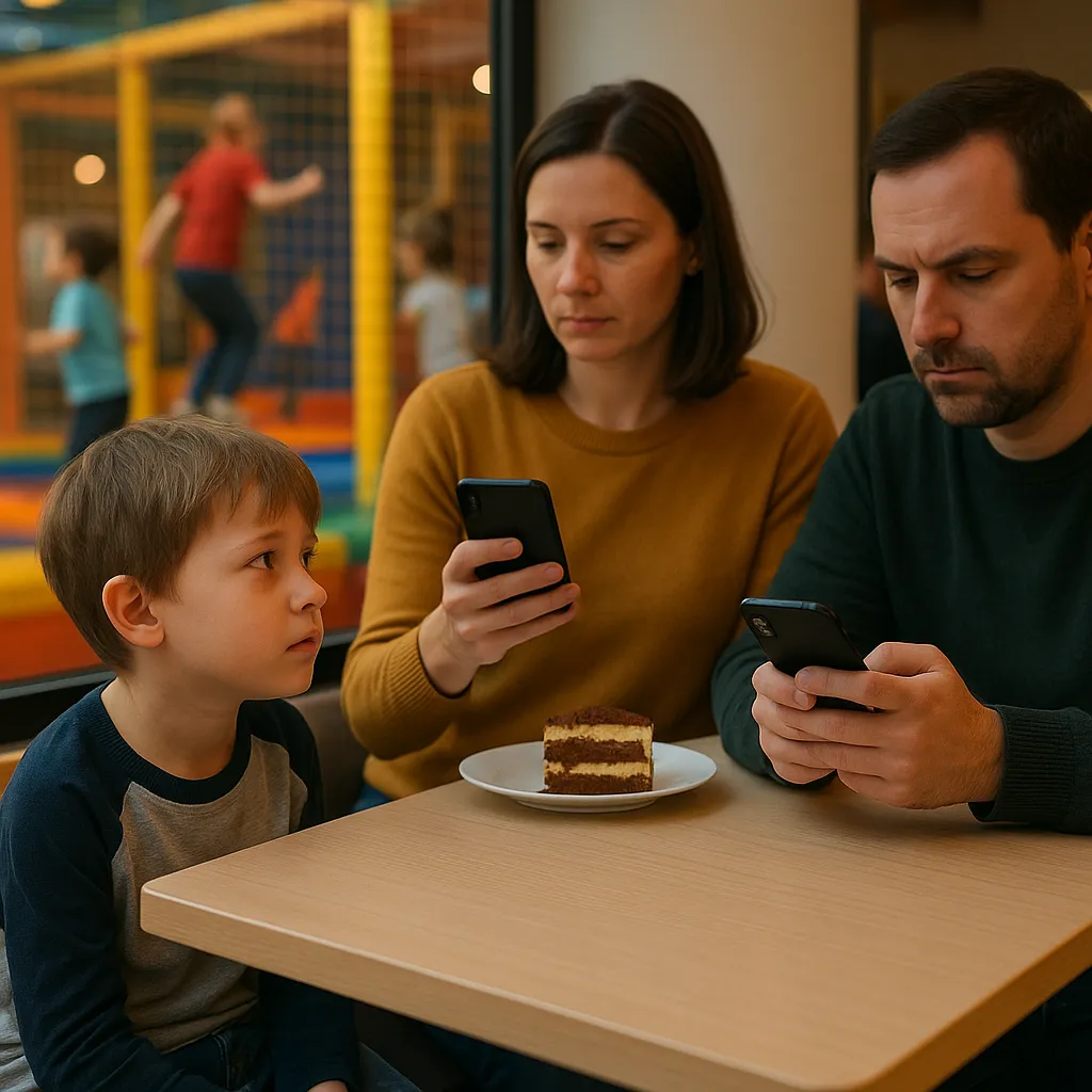Ваня сделал заказ, и все принялись за еду. Костя управился быстрей родителей, ведь он не листал ленту в соцсетях, не делился со своими подписчиками фотографиями торта, не рассказывал, каким он был смешным в детстве. Сидя между родителями, болтая ножками, поглядывая то на одного, то на другого, он с нетерпением ожидая, когда его отведут в игровую комнату к другим детям.