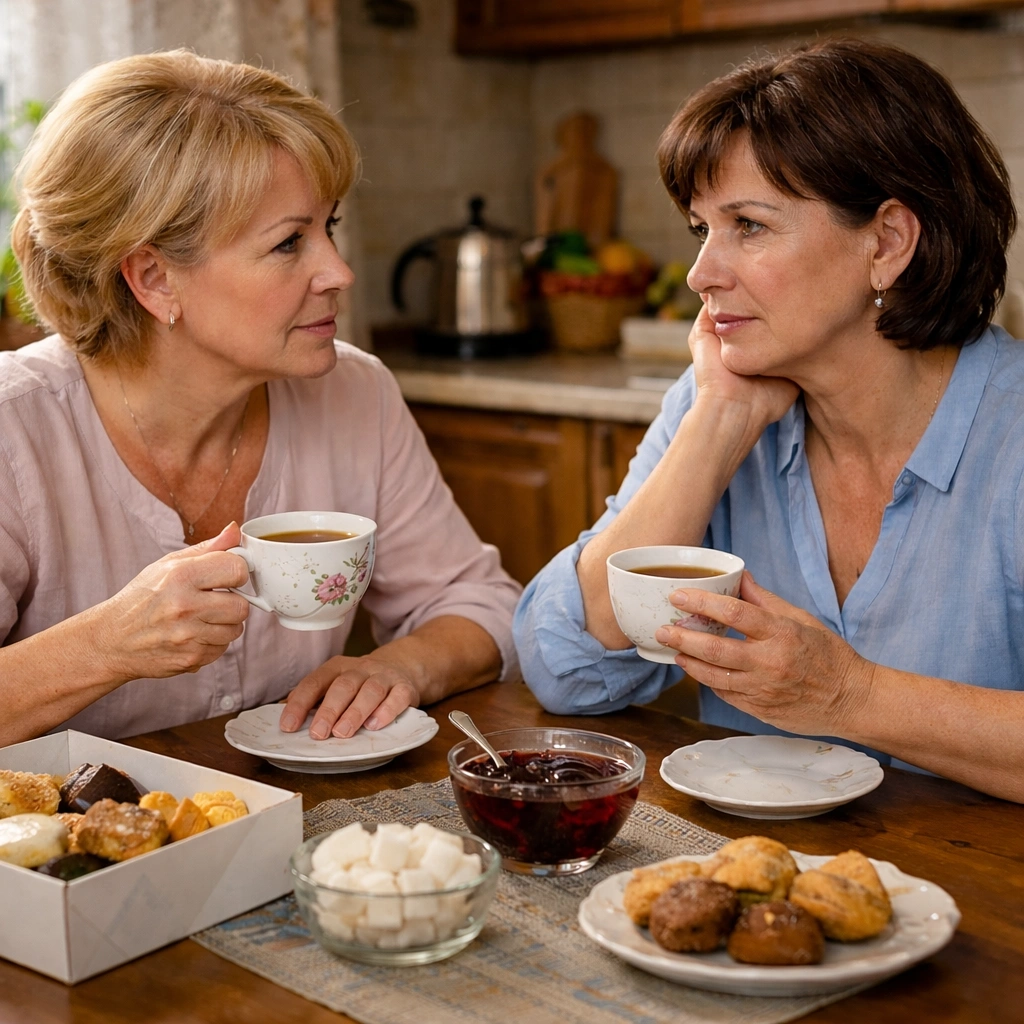 Алла накрыла стол к чаю: поставила две чашки, вазочку с вареньем, достала из холодильника коробку с пирожными, которые купила специально для сегодняшней встречи.