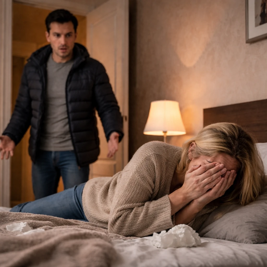 Мужа не было дома около двадцати минут, а когда он вернулся, то не застал Надежду на кухне. Услышав чьи-то всхлипывания, Юра зашёл в комнату и удивился: супруга лежала на кровати и навзрыд плакала.
