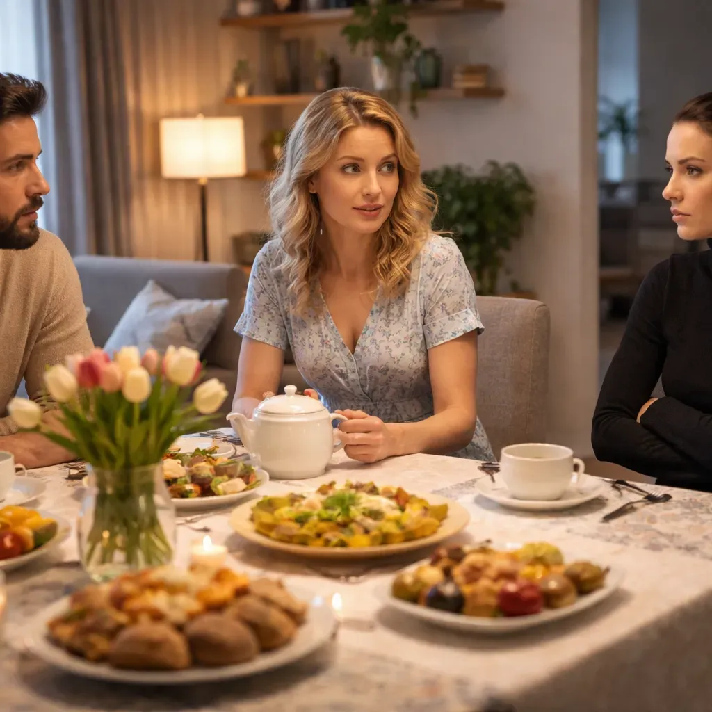 Аня появилась на пороге с опозданием. На ней было строгое чёрное пальто, волосы аккуратно собраны в хвост, а выражение лица – сдержанное, почти холодное. Она едва кивнула Родиону, не улыбнувшись, и сразу прошла в комнату, выбрав место в дальнем углу, подальше от всех. Лида, стараясь не выдавать беспокойства, предложила всем присесть, налила чай, начала разговор о погоде, о недавних событиях в городе, но атмосфера никак не желала становиться непринуждённой.