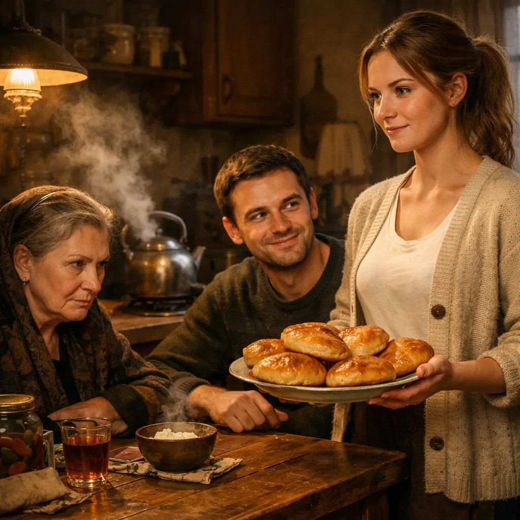Пироги вынули из духовки. Оксана выложила их на доску, накрыла полотенцем — пусть дойдут. Зинаида Петровна смотрела молча, но руки уже тянулись к краю полотенца.