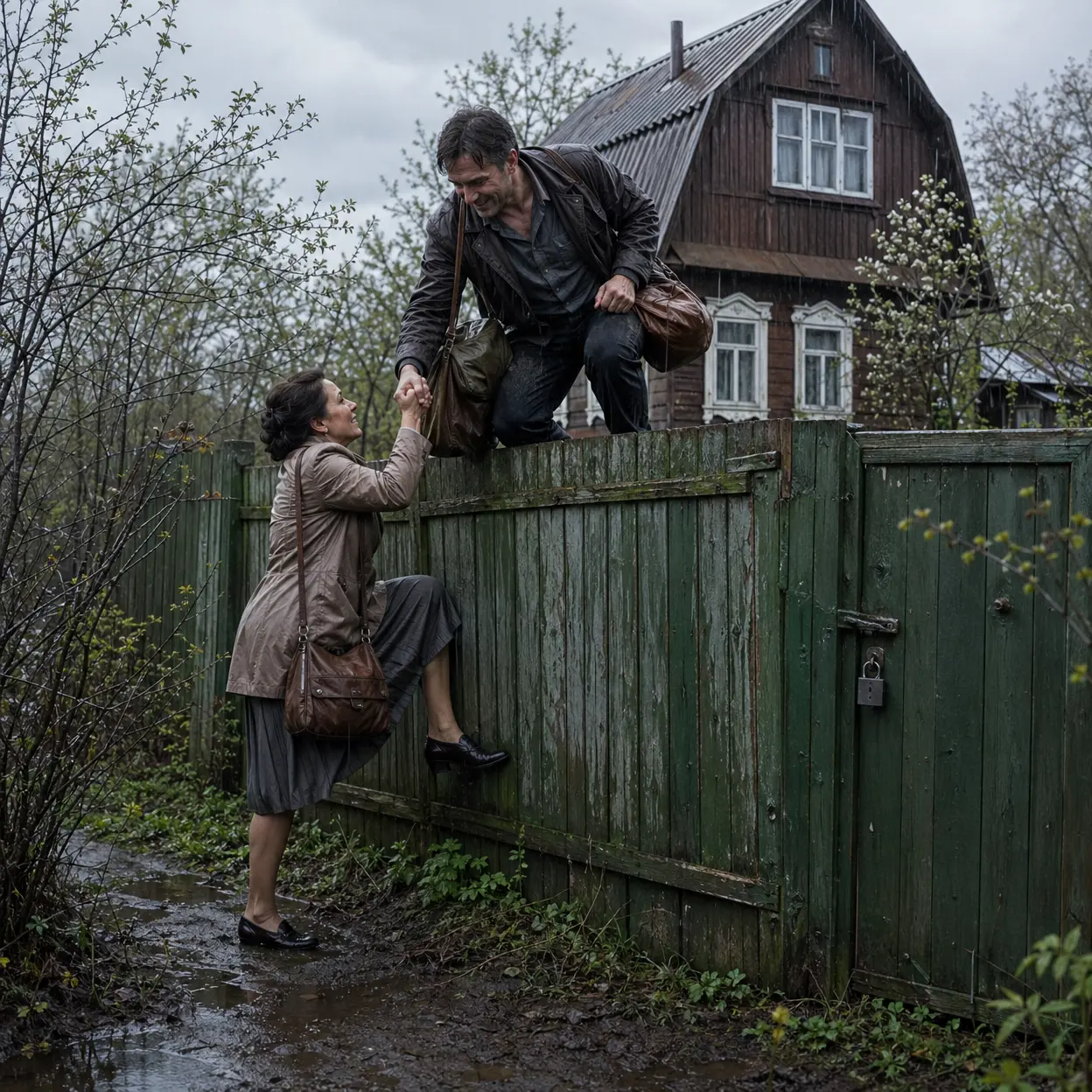 — Ладно, была не была… — Она подхватила подол юбки и полезла вслед за мужем. Колготки порвались, юбка испачкалась ещё сильнее, но главное — она перелезла.